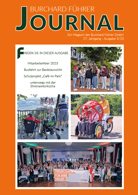 Emotionale Momente, aktuelle Geschehnisse und die kleinen und großen Freuden aus unseren Einrichtungen - In unserem vierteljährlich ver­öffentlichten Firmenjournal, durch Fotos und unsere Pressemitteilungen teilen wir mit Ihnen unsere Neuigkeiten.